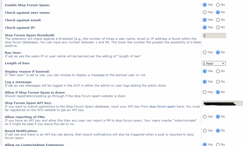 扩展程序将在注册和发帖时查询Stop Forum Spam数据库(仅供访客使用),如果发现,则拒绝发帖和注册。