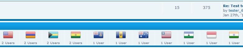 phpBB扩展,允许用户选择国旗,并在phpBB论坛的索引页面上显示最多(用户选择国旗的人数最多)的国旗数量。页头是指向某个标志的所有用户列表的链接。单击该标志的用户计数将显示已设置该标志的所有用户。