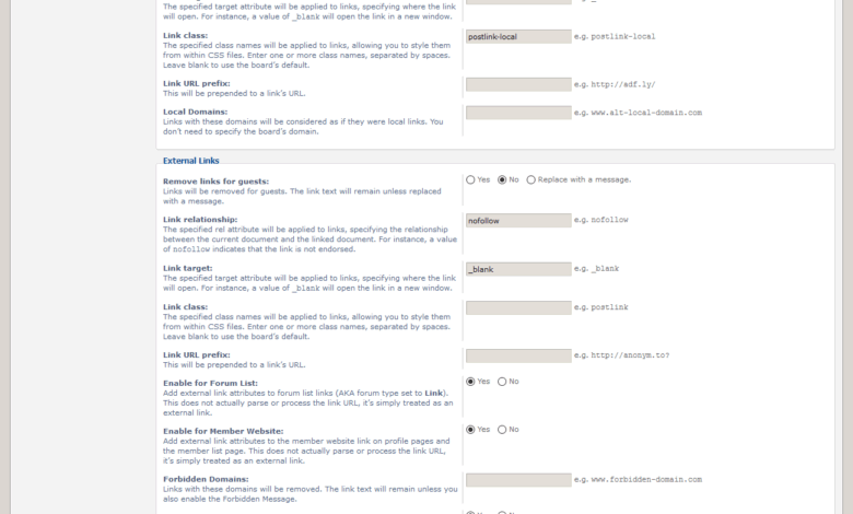 根据链接是内部链接还是外部链接,修改帖子(或私人消息)中链接的属性。这允许设置不同的类,使内部和外部链接看起来不同,设置目标,以便在新窗口中打开链接,设置nofollow,为URL添加前缀,例如添加匿名器或货币化器,等等。