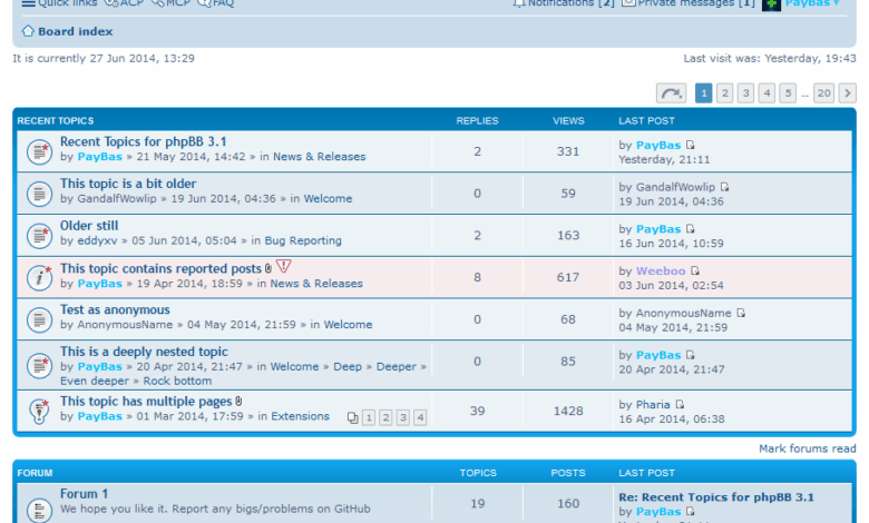 phpBB扩展,用于显示最近发布的主题。