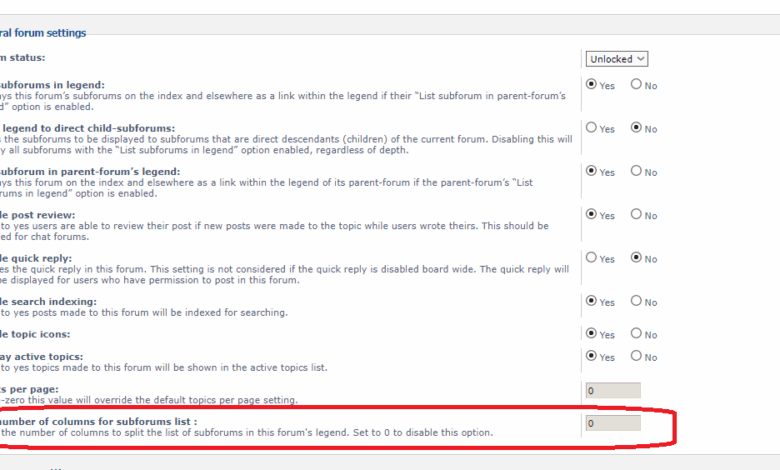 在ACP中创建版块/编辑版块设置时,可以在父版块中设置要拆分子版块的列数。
