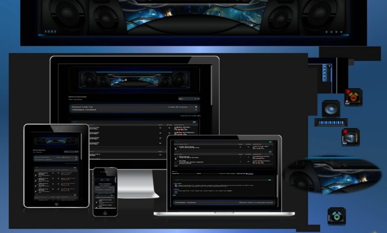 适用于音乐家和/或音乐爱好者、录音室或声学家或扬声器论坛中的讨论等的phpBB论坛风格......- 颜色为黑色、灰色和蓝色。